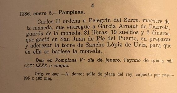 Monedas que circulaban en Navarra en el siglo XIV y sus valores – Antonio Ubieto Arteta – 1967 – link