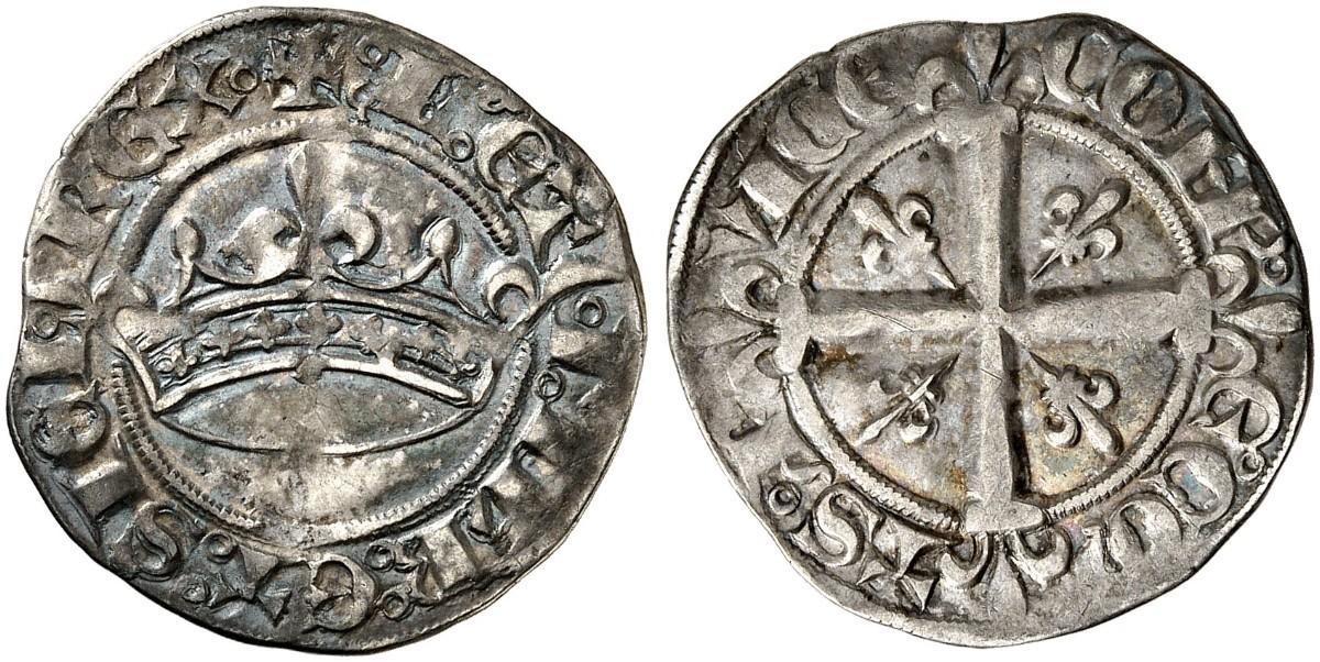 Karlos II Nafarroako erregearen (1349-1387) zilarrezko Koroa edo Nafarroako Parpailola – 1,54gr – Bigarren Lanketa Garaia